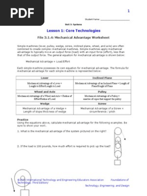 37 mechanical advantage of simple machines worksheet answers