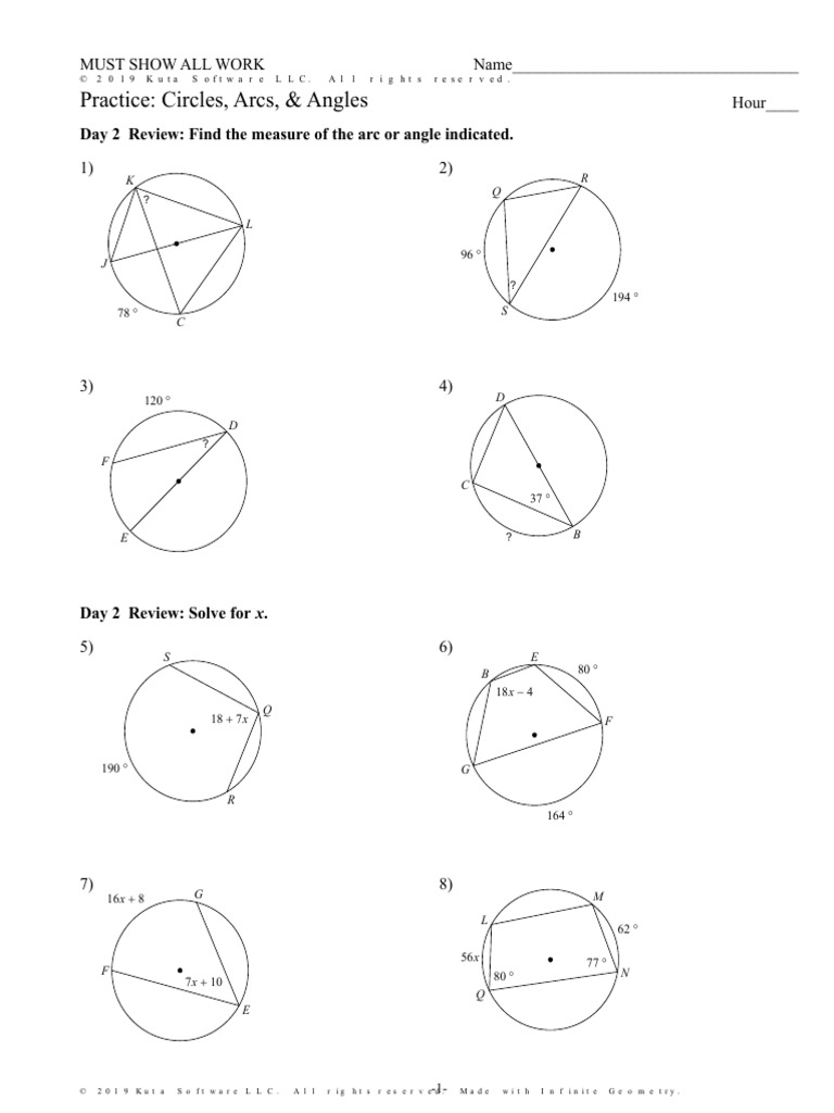 Worksheets are angles arcs and segments in circles polygons and circles g arcs and angles formed by secants and tangents from a infinite geometry name construction copy and bisect segments and angles lines segments and rays circles angle relationships date block solve for assume that lines which appear tangent are nag10110 to.