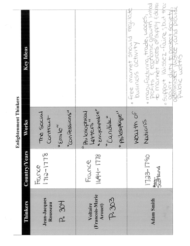 Key Ideas and Details RH.10-12.1, 2, 3 ... and then to write answers to the following questions. This activity should encourage close reading and help students begin to comprehend the ... Explore each philosopher's relationship to Enlightenment thinking and how it evolved over time. 4. Examine the connections between the writers' historical ...