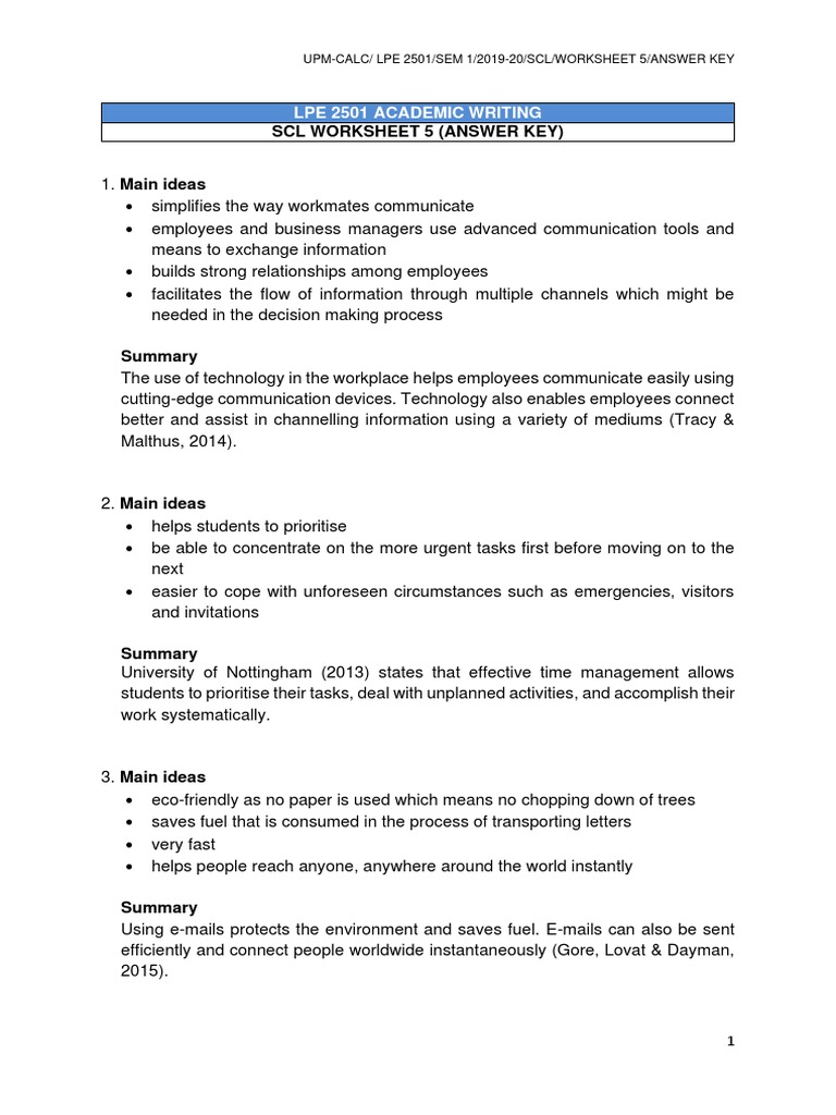 43 main idea worksheet 5 answers