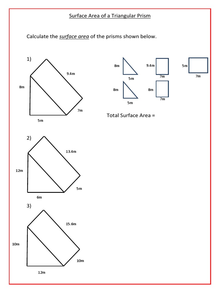 Surface area of triangular prism worksheet pdf