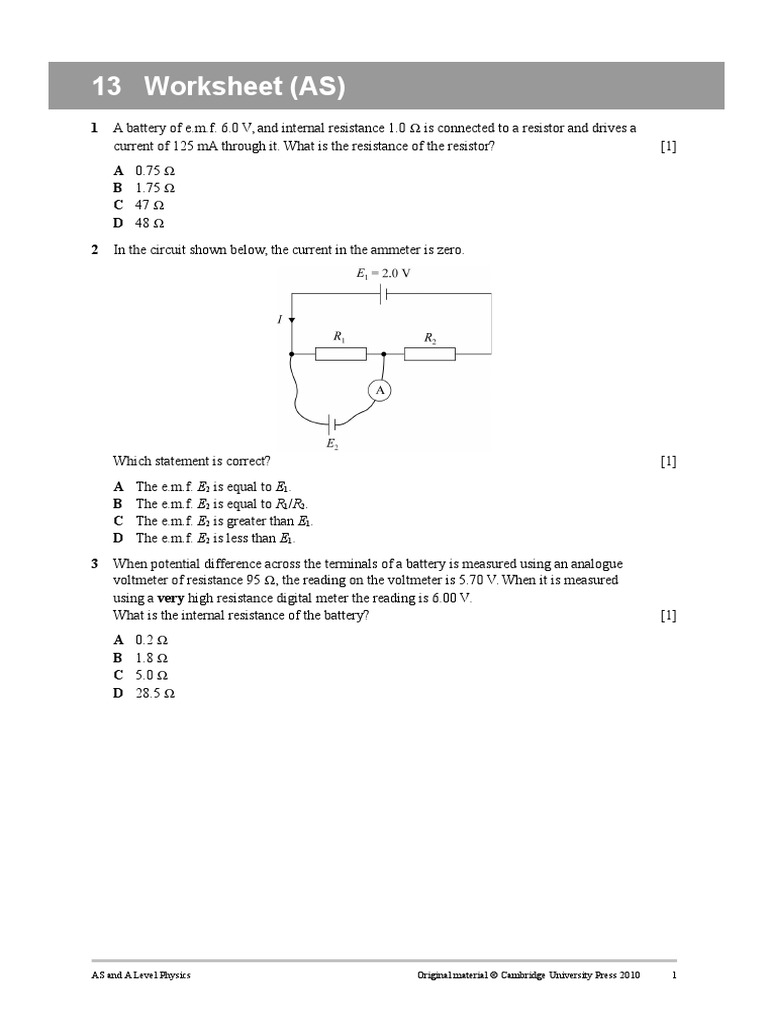 Equivalent resistance worksheet 1 1. Determine the total voltage electric potential for each of the following circuits below. 20 50 2n 20 50 let 2. Circuit position voltage v current a resistance ohm 1 10 0 2 20 0 3 30 0. All the resistors or other components are arranged in a line step 2 add all resistances together. Voltage, Current and Resistance MCQ Test & Online Quiz: Below is the Voltage, Current and Resistance MCQ test that checks your basic knowledge of Voltage, Current and Resistance. This Voltage, Current and Resistance MCQ Test contains 20 Multiple Choice Questions. You have to select the right answer to the question. Finally, you can also take the Online Quiz from the Take Voltage, Current and... Cstephenmurray Current Voltage And Resistance Answer Key Author: womenspeakworldwide.com-2021-12-28T00:00:00+00:01 Subject: Cstephenmurray Current Voltage And Resistance Answer Key Keywords: cstephenmurray, current, voltage, and, resistance, answer, key Created Date: 12/28/2021 1:41:11 AM Electrical circuits worksheet answers. Answer the multiple choice questions about circuits and current electricity. Circuit position voltage v current a resistance ω 1 10 0 2 20 0 3 30 0 total 6 00 4. Worksheets ought to be a helping hand to improve the quantity of understanding for the slow learners.