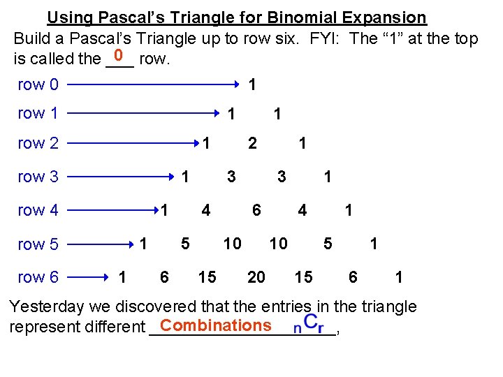 This worksheet combines practicing using the binomial theorem to expand binomials .... Yes, Pascal's Triangle and The Binomial Theorem isn't particularly exciting. But it can ... These are both ways to quickly multiply out a binomial that's being raised by an exponent. Like, say: ... Have Pascal, will travel (all the way to the answer)..