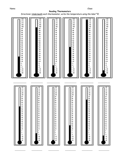Reading a thermometer worksheet. Grade 2 Temperature: Reading A Thermometer (Metric) Worksheets Grade 2 Measurement worksheets about reading the temperature in Celsius from a thermometer. Negative temperatures can be considered, but decimals are not allowed. Reading a thermometer worksheets and online activities. Free interactive exercises to practice online or download as pdf to print. reading a thermometer worksheets reading thermometers worksheets go beyond reading books with our printable reading a thermometer worksheets prepare students of grade 1 through grade 4 to read temperatures on celsius and fahrenheit scales from a large variety of temperatures recorded on our distinctly designed thermometers ranging from 0° to 50° … Reading Thermometers Worksheet by Teacher Gameroom 202 $1.50 PDF Activity Reinforce science skills with this weather themed worksheet. Students practice reading thermometers in Celsius and Fahrenheit. Comes in 2 colors (Blue for Celsius and Red for Fahrenheit). There are 10 thermometers per page and 3 worksheets in all. Answer Key is included.