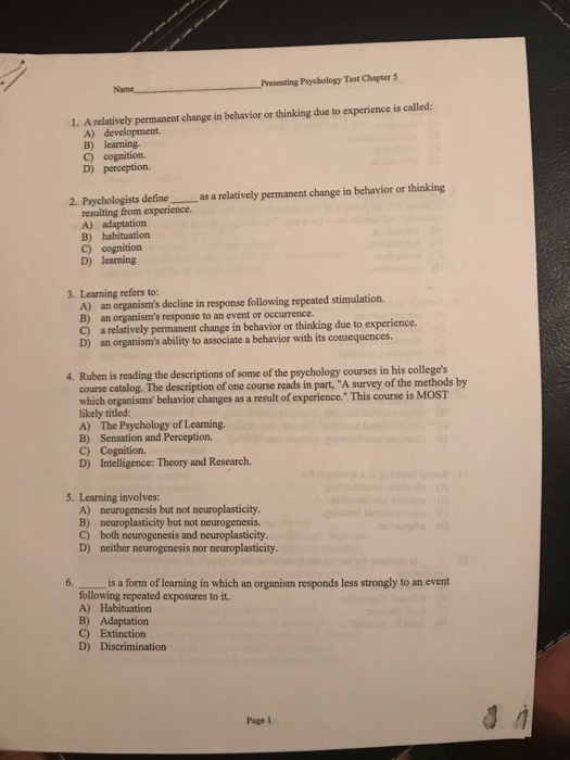 Psychology EXAM QUESTIONS AND ANSWERS MHGanainy. Psych Chapters 1-6 Midterm #1 Darrel Adams. Psychology Exam Review 1 Jeremy Rinkel. Psychology 4 to 8 mark questions Aarono1979. Pretest Chapter 1 & 2 Traveon Brassfield ... 1. Chapter 1 Introducing Psychology