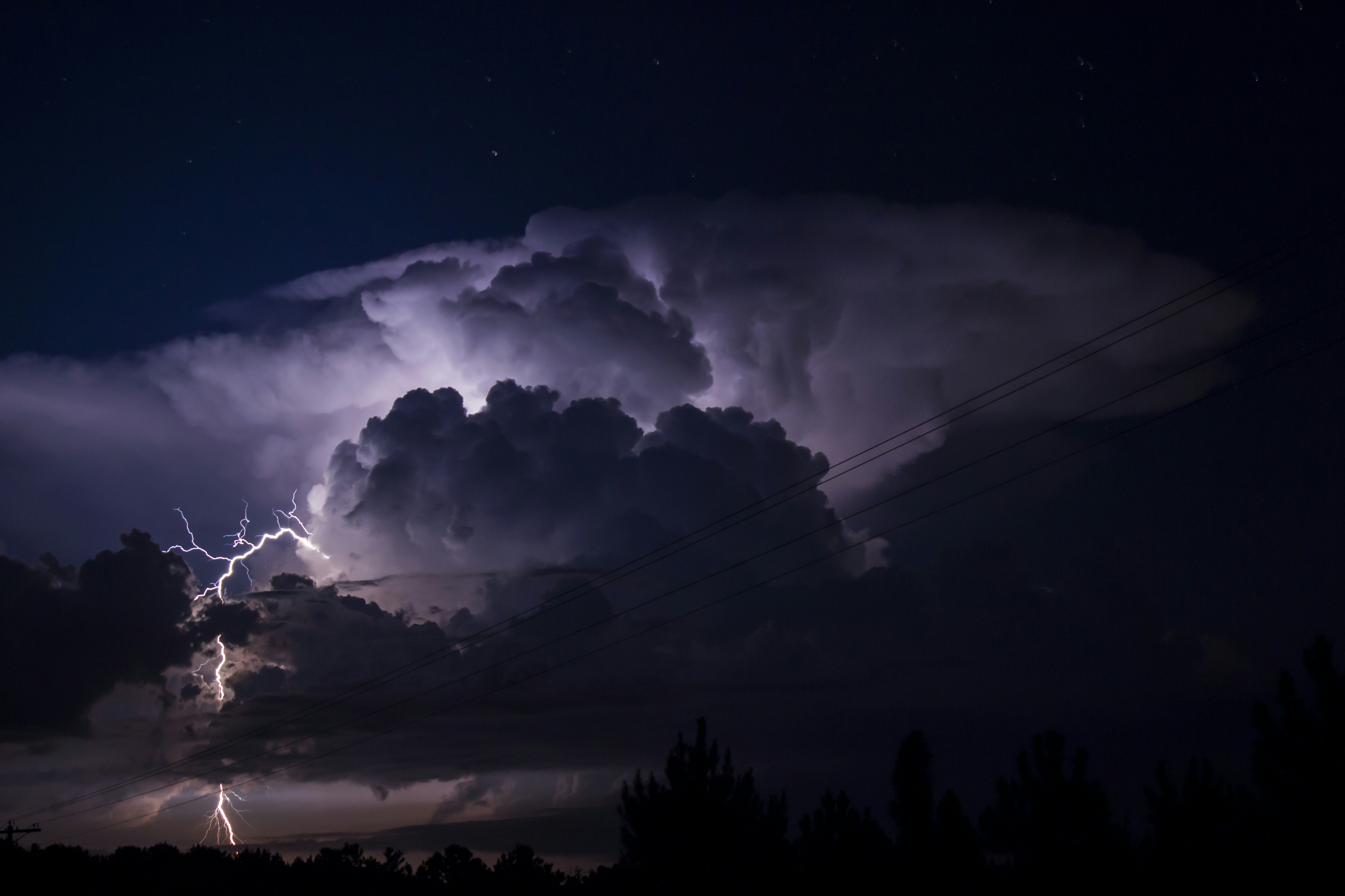 A fleet of VORTEX2 vehicles tracks a supercell thunderstorm near Dumas. The blue-green color in the cloud is associated with large hail.