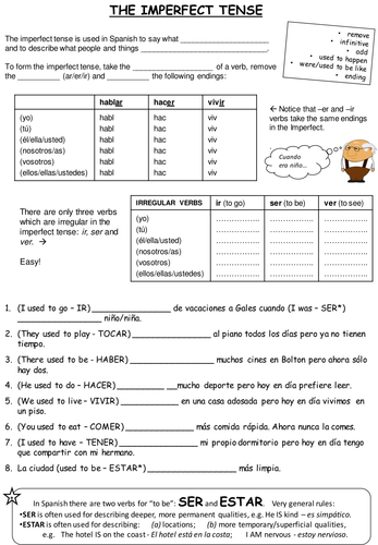 Spanish imperfect verb tense for regular and irregular verbs. Includes lessons and exercises. Teacher Resources & Worksheets. Hundreds of Spanish worksheets from which to choose. One of the two simple past tenses in Spanish is the imperfect.