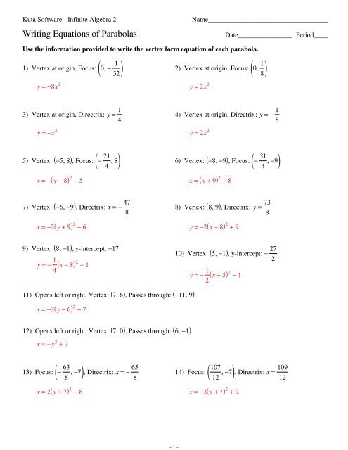 Results 1 - 24 of 174 ... This partner practice worksheet review writing an equation of a parabola when you are given the focus and the directrix.
