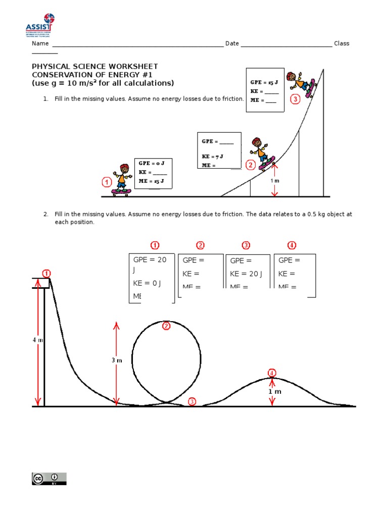 Conservation of Energy Worksheet #1 - 1 | PDF | Potential ...