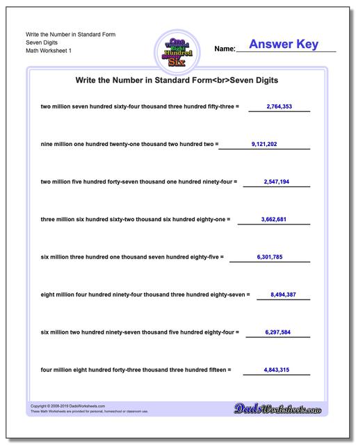 Word form to standard form worksheet