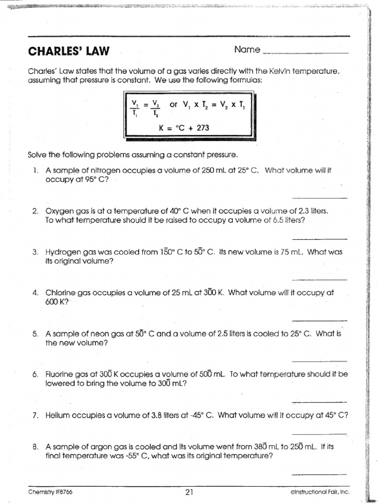 Charles Law Problems Worksheet Answers - Live Worksheets ... Charles Law Problems Worksheet Answers - A youngster's ability to succeed in school counts greatly on their capability to connect properly using their vocabulary.Making sense of their environments and also placing their emotions as well as opinions into words permits the kid to communicate their feelings and ideas to others.