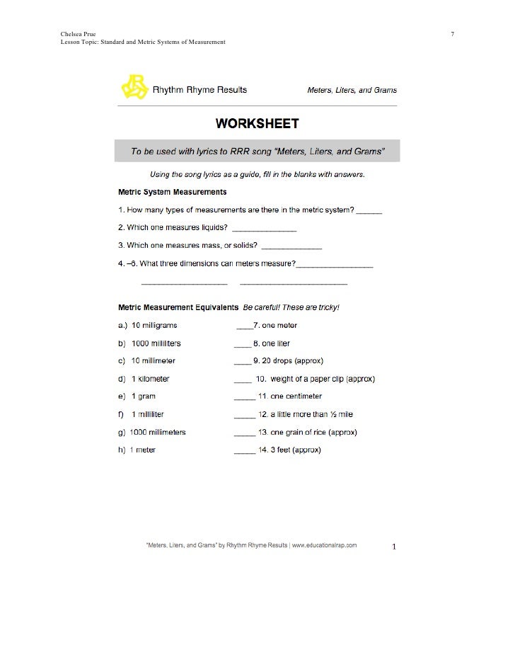 Measuring Capacity (Milliliters and Liters) Worksheets Printable worksheets for measuring volume or capacity in liters and milliliters. Logged in members can use the Super Teacher Worksheets filing cabinet to save their favorite worksheets. Quickly access your most used files AND your custom generated worksheets! Meters, Liters and Grams - YouTube I once taught Math and Science in a Sixth Grade classroom. My students were beginning a unit on the metric system and, knowing how well students have...