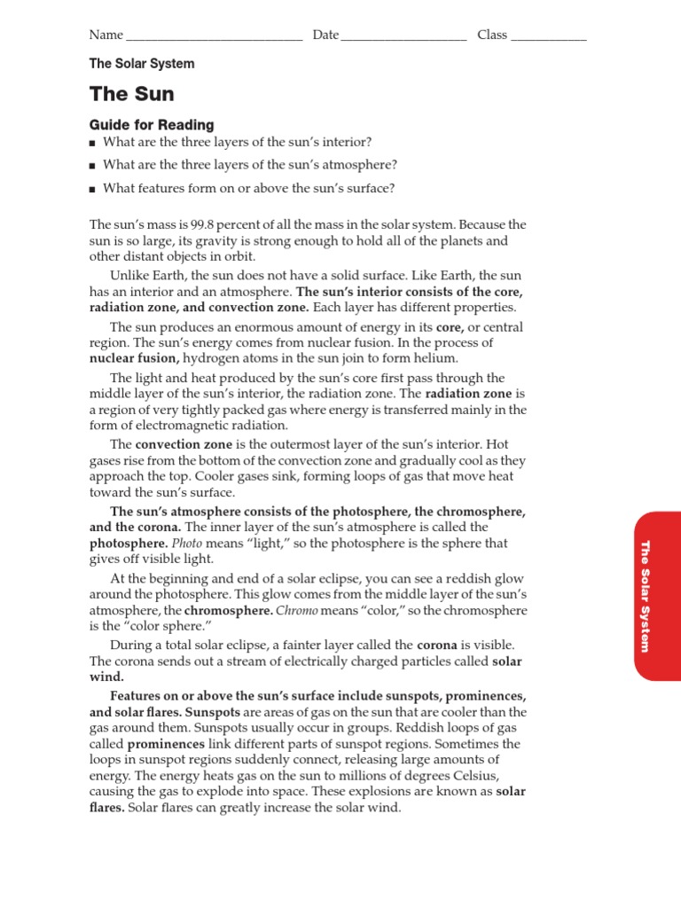 The solar system the sun worksheet. Solar System Lesson Plan & Worksheet | HST Learning Center HST's Solar System Lesson Plan for grades 3-5 includes a printable and a worksheet to teach kids the size and scale of the sun and planets. Demonstrate knowledge of the solar system by arranging spherical objects of different sizes in an order that represents the eight planets and the sun. Free Planets of the Solar System Worksheets - Homeschool Den The Solar System by Laura Hamilton Waxman (Good for ages 7-11). Astronomy Worksheets for Middle School: I also made some astronomy materials I for my older two. We talked about topics such as the layers of the Sun, the Sun's atmosphere, solar flares and sun spots. PDF The Sun Worksheet The Solar System. The sun produces an enormous amount of energy in its core, or central region. The sun's energy comes from nuclear fusion. During a total solar eclipse, a fainter layer called the corona is visible. The corona sends out a stream of electrically charged particles called solar wind. Solar System Lessons, Worksheets and Activities FREE Solar System Activities and Classroom Resources! | Teacher Planet. The solar system is an amazing and complex network of planets, stars, moons, asteroids, and even mysterious black holes. It doesn't matter if you're ten or fifty, just thinking about the stars and the possibilities fills the mind with...