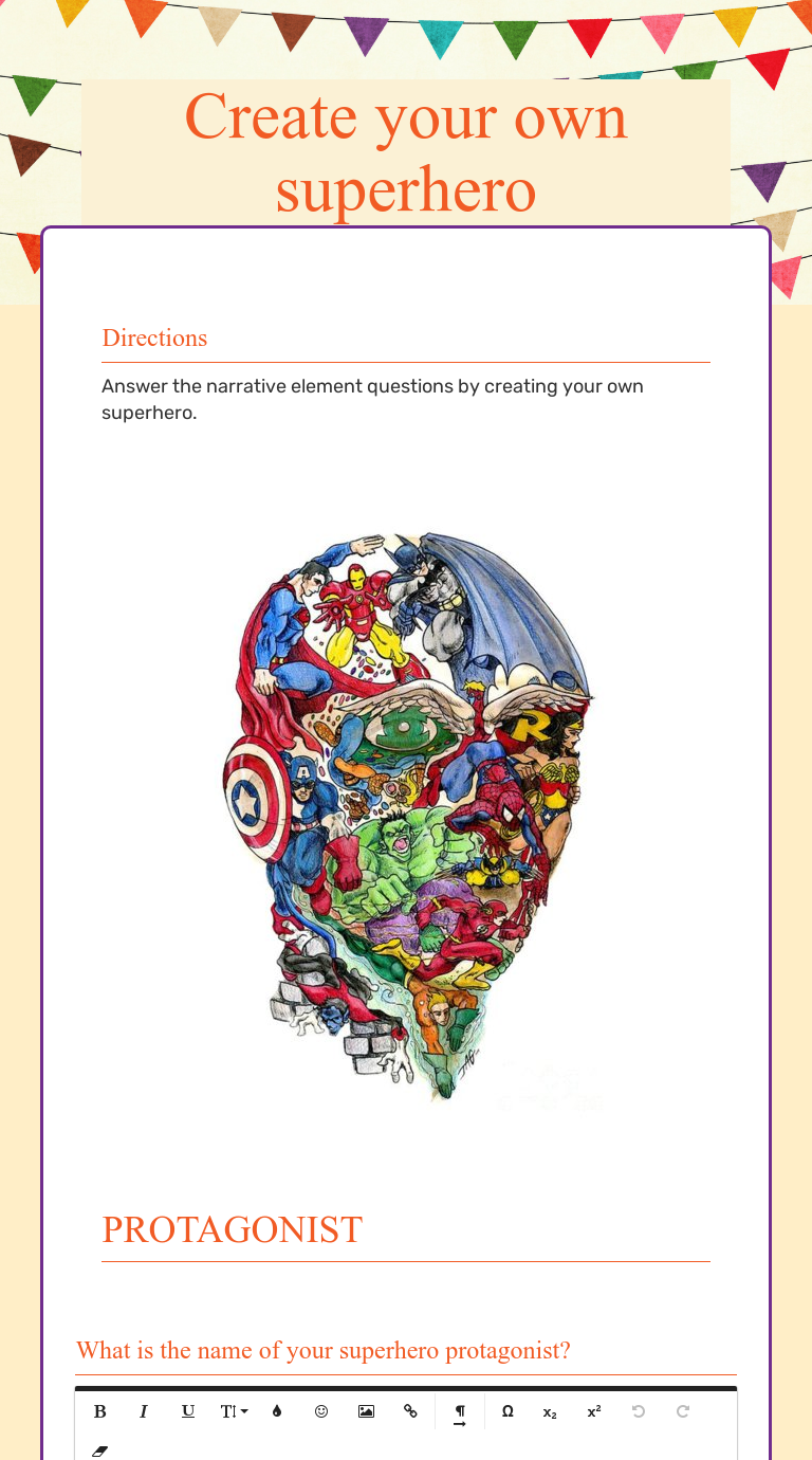 Create a superhero worksheet