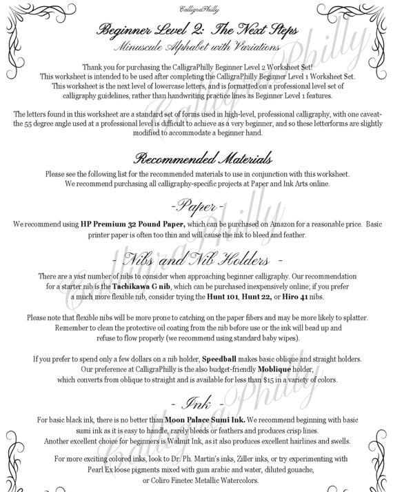 NEW! Beginner Level 2: DELUXE Lowercase Copperplate Calligraphy Alphabet Worksheet with Letter Variations on K, P, R, S- Digital Download