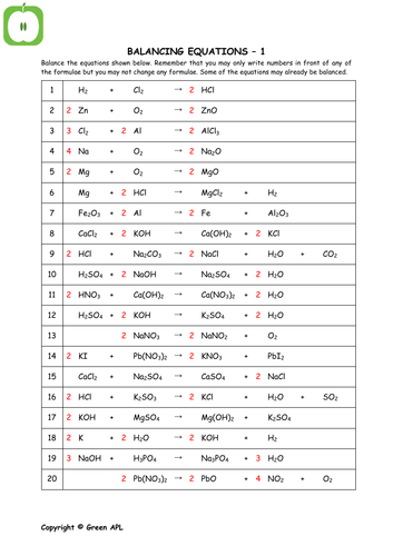 Balancing Chemical Equations 2 Worksheet Answers ... Word Equations Worksheet Answers. Balancing chemical equations 2 worksheet answers. Heres a link for the same. Al 2 O 3 Fe g Fe 3 O 4 Al 4. The Balancing Equations Game from PHET Now an application can only go so far as to keep you engaged. Al 2 SO 3 3 NaOH g Na 2 SO 3 AlOH 3 3. Convert the chemical names into chemical formulas.
