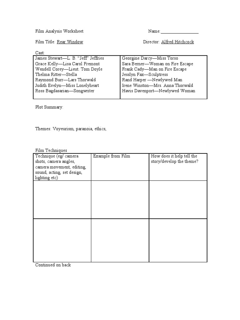 43 motion picture analysis worksheet