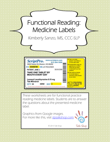 Reading a prescription label - ESL worksheet by ... A simple reading comprehension task for understanding prescription labels. Welcome to ESL Printables , the website where English Language teachers exchange resources: worksheets, lesson plans, activities, etc.