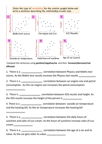 Scatter plot correlation worksheet pdf - Canada examples ... A scatter plot is a plot on the coordinate plane used to compare two sets of data and look for a correlation between those data sets. An association is a relationship or dependence between data. The worksheet printable contains three separate worksheets about scatterplots. Print a copy of the Answer Key: Cultivating Data Worksheets printable.