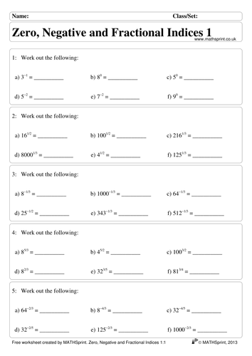 Exponents Worksheets - free & printable | K5 Learning Exponents worksheets, including exponents with whole numbers, fractions and decimals as a base, negative bases, zero exponents, negative exponents and equations with exponents. No login required.