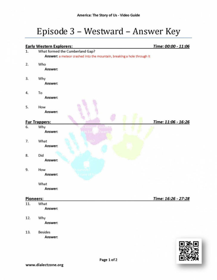 Westward Us America Of The Story Answers Worksheet Pdf America The Story Us Episode 11 Worksheet Answers The Best from America The Story Of Us Worksheets, source:worksheets These are aimed at second language learners of English Use what you saw in the video AND what you've learned in class to respond to the following Q's The land west of the Cumberland Gap is controlled by and S his men cut through ...