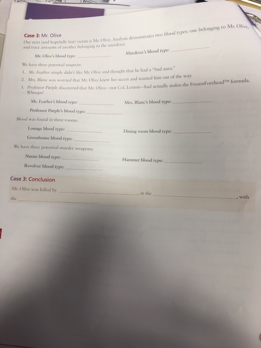 Blood type baby mystery worksheet answers. PDF Blood type baby mystery worksheet answers - lednotice Blood type baby mystery worksheet answers We compiled all the worksheets used in this course. You can print them or buy them in the book form. These are not a complete offline course, only the worksheets used in this online course. Level 1 ~ â € "4 (1º to 4th) Buy" Printing Levels 5 ~ â € "8 (5 to 8th) buy" Print found a problem? Check here. Were the babies switched? - The Genetics of Blood Types In this minds-on, hands-on activity, students use simple chemicals to simulate blood type tests and carry out genetic analyses to determine whether hospital staff accidentally switched two babies born on the same day. Students learn about the genetics of ABO blood types, multiple alleles of a single gene, and codominance. Solved Heredity Worksheet #6 Using Genetics to Help Solve Question: Heredity Worksheet #6 Using Genetics to Help Solve Mysteries Blood type in humans is determined by three alleles: 1A, 1B, and i. IA and IB are co dominant alleles. Both IA and IB are dominant to the allele i. Four possible phenotypes or blood types, A, B AB and O are possible when these alleles are combined. genetics blood types worksheet answers 33 Blood Type Baby Mystery Worksheet Answers - Free Worksheet Spreadsheet dotpound.blogspot.com worksheet answers blood type abo genotypes phenotypes allele genotype genetics mystery dominance spreadsheet Science Exam Part 2 - ProProfs Quiz punnett offspring proprofs determined percentage exception awt thread genes probability