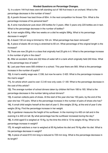 41 percent of change word problems worksheet