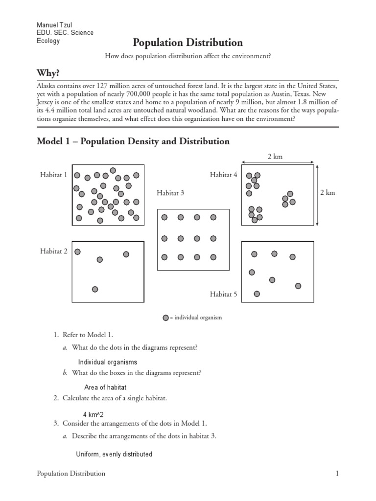 Population Distribution & Density Worksheet & Answer Key May 15, 2013 - Population Distribution & Density Worksheet & Answer KeyI have created this worksheet for my students to work through and to learn the difference between population distribution and density. Answer key included.A potential resource for students of many ages.Note: This activity is part of my ...